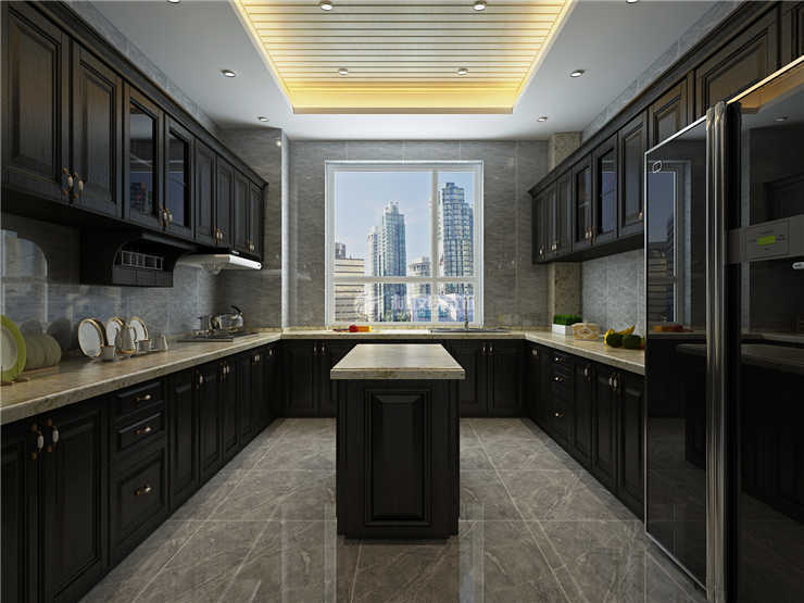 在一個(gè)長(zhǎng)邊的一側(cè)添加一個(gè)柜臺(tái),u型廚房是以L型廚房延伸來(lái)的,整個(gè)墻壁的高柜臺(tái)收納更多的物品和電器。u型廚房可更多人同時(shí)使用,不會(huì)出現(xiàn)人多廚房就轉(zhuǎn)不開(kāi)身的問(wèn)題。滿足日常做飯烹飪的需要,縮短了人們使用的東西取和返的時(shí)間。