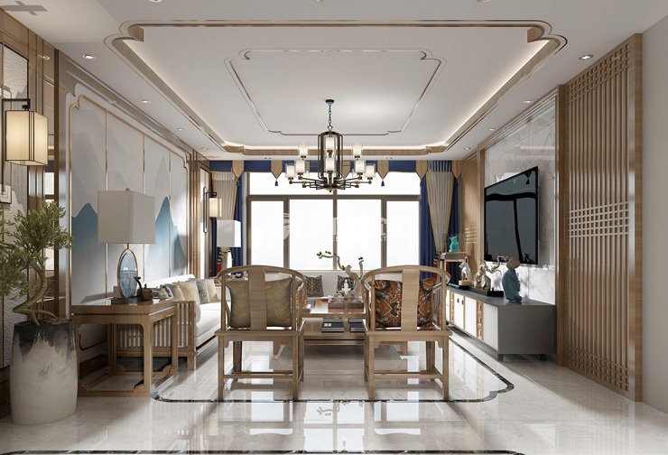 (圖為信達萬科如園140㎡戶型客廳裝修案例)