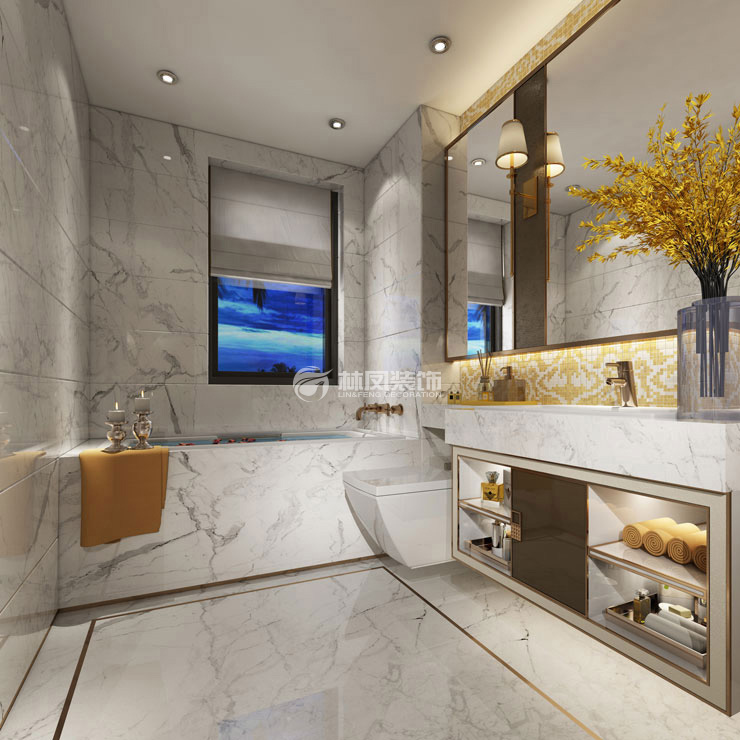 (圖為衛(wèi)生間定制洗手盆水龍頭裝修效果圖)
