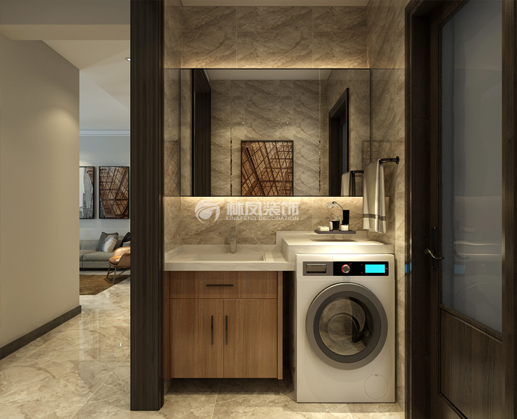 (圖為衛(wèi)生間洗衣機水龍頭布局裝修效果圖)