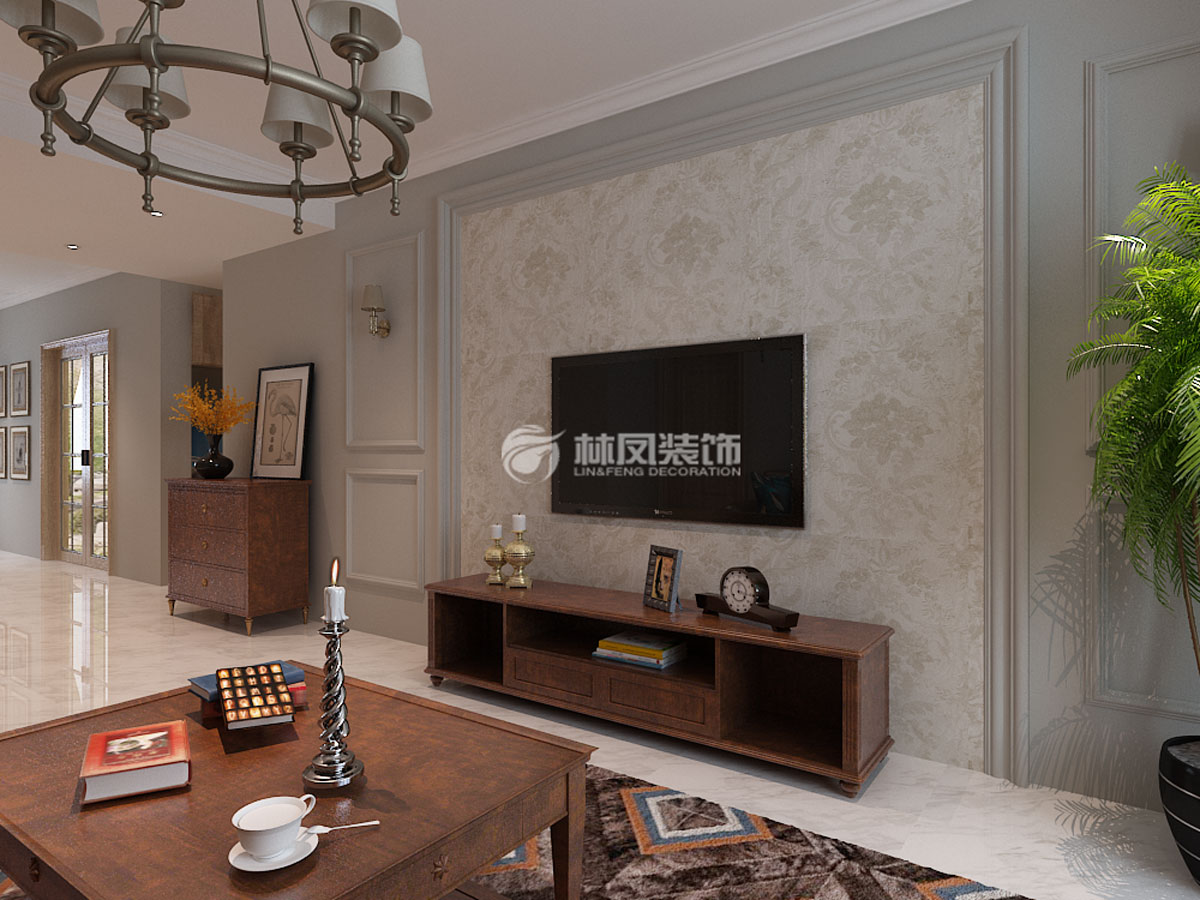 (圖為客廳電視背景墻花紋壁紙裝修效果圖)
