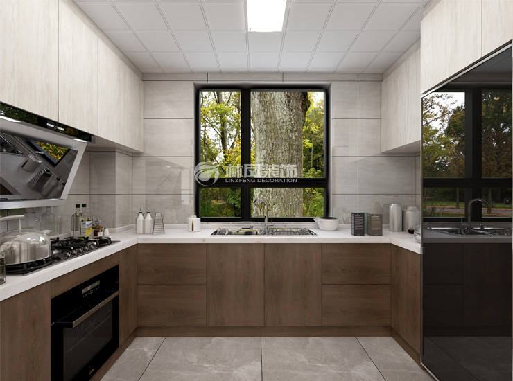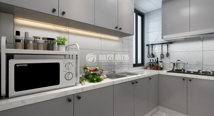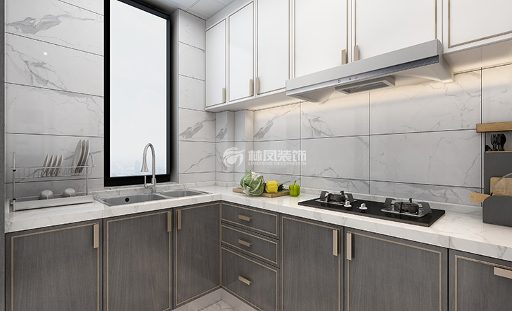 (圖為現(xiàn)代風(fēng)格廚房雙槽選擇裝修效果圖)