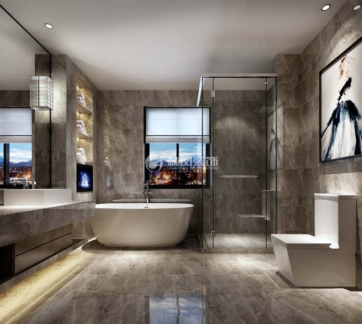 本案衛(wèi)生間灰色無縫瓷磚鋪貼,顯得整體底色和銜接無縫隙,協(xié)同整體色調(diào)的灰色,再搭配白色的陶瓷坐便和洗手盆,更能凸顯衛(wèi)生間的奢華與斯雅。