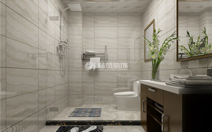 衛(wèi)生間墻地磚選擇灰色系列的磚給人帶來的是一種溫馨,浴屏的獨(dú)特設(shè)計(jì)分開了空間的干濕分離,體現(xiàn)出了客戶的高大上。